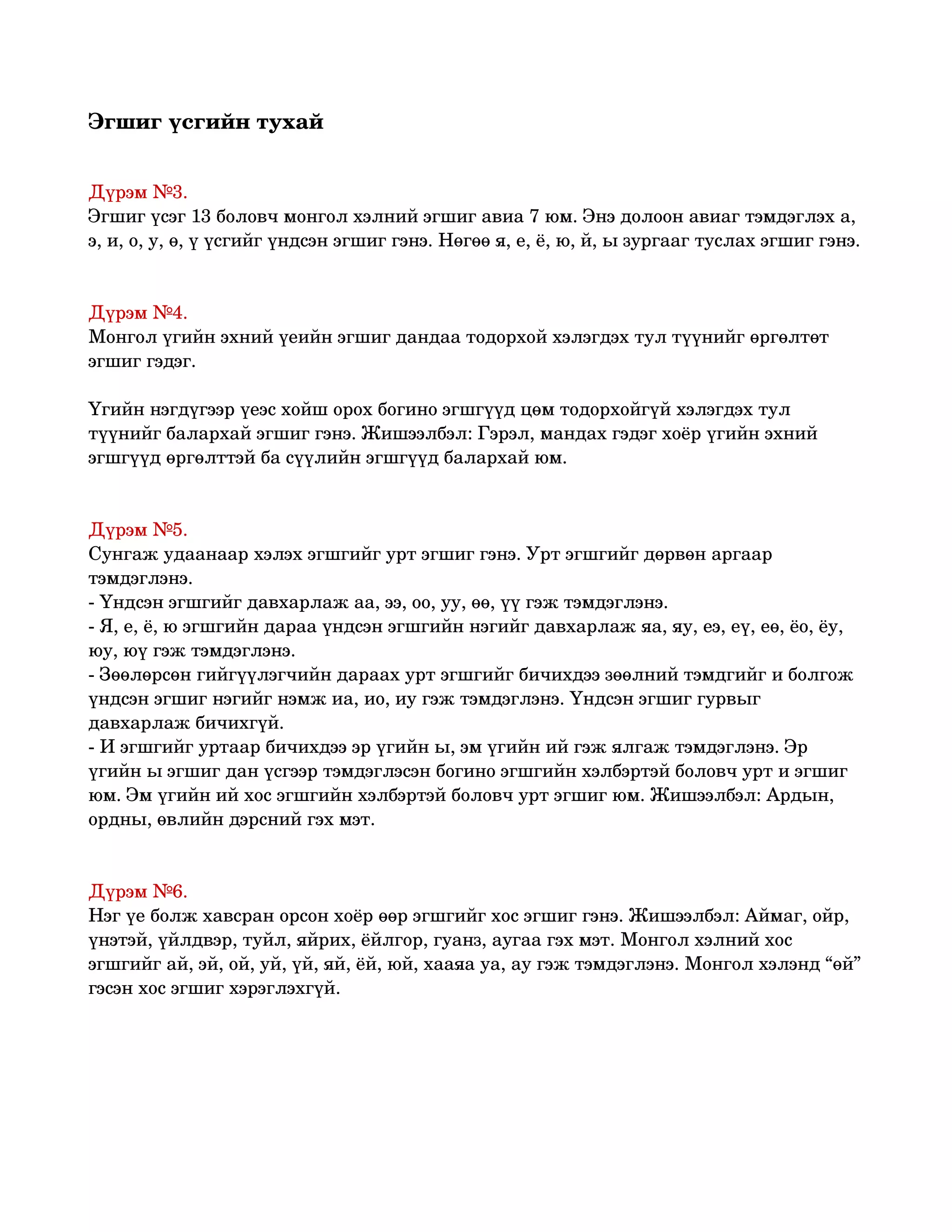 зайн сургалт 2 монгол хэлний бичгийн дүрэм