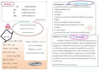 กวีกะออกะแอ 10 เทคนิคหยุดสะอึก เปดโลกวิทยาศาสตร เด็ก เอยเด็กนอยดอยเดียงสา 1.กระตุนผิวดานหลังของลําคอ แถวๆ บริเวณที่เปดปดหลอดลม โดยการดึงลิ้นแรงๆ ฉลาด คิดเพียรใฝหาอานและเขียน 2.ใชดามชอนเขี่ยที่ปดเปดหลอดลม 3.กลั้วน้ําในลําคอ ชาติ หวังพึ่งตัวเจาเปลงแสงเทียน 4.จิบน้ําเย็นจัด เจริญ ยิ่งพรอมพากเพียรคูจรรยา 5. กลืนน้ําตาลทราย 1‐2 ชอนโตะ โดยไมตองใชน้ํา หรือ กลืนกอนขาว กอนขนมปง กอน ครูแสนดี : รอยกรอง น้ําแข็งเล็กๆ ครูตาลกับตัวเลขนารู 6.ดื่มน้ําจากขอบแกวที่อยูดานนอกหรือดานไกลจากริมฝปาก ผลบวกมุมภายในของรูป N เหลี่ยม 7.จิบน้ําสมสายชูที่เปรี้ยวจัด หรือดมสารที่มีกลิ่นฉุน เชน แอมโมเนีย 8.การฝงเข็ม มีคาเทากับ 180 องศา ( N – 2 ) ครูฝาย 9. การสวดมนตทําสมาธิ ลองกําหนดและหาดูนะคะ 10. กลั้นหายใจเอาไวโดยการนับ 1 – 10 แลวหายใจออก จากนั้นดื่มน้ําตามทันที คิดดี ทําดี ทําไมถึงเรียกวา “เมาส” (MOUSE) I T นารู กับครูหนุย คาของครู อยูที่ไหน ใครรูบาง ออกเสียงคลาย ๆ กับคําที่มีความหมายวา “หนู” และพอแปลตรงตัว แปลตาม Dictionary ก็ ฝากถึงคุณครู....เนื่องในวันครู.....16 ม.ค. 2554 แปลวา “หนู” ซะดวย แตอยาเขาใจผิดคิดวาวันนี้จะพูดเรื่องการเลี้ยงหนู จะวาไปไอหนูก็ใชอยู แตเปน ใชรูปราง หนาตา อาวุโส คัดจากวารสารโรงเรียนวิถีพุทธ หนูคอมพิวเตอรนะ!!! ทําไมถึงตองเรียกวา MOUSE นั้น คิดวานาจะมาจากรูปลักษณะในตัวของมัน ใชตําแหนง การงาน บานใหญโต เอง ไมเชื่อก็ลองจินตนาการดูสิ ระหวางลูกหนูตัวเล็ก ๆ กับอุปกรณที่เรียกวา MOUSE อันวาเจา “รูตื่นรูเบิกบาน” เลม 2 หนา 32 MOUSE นี่ ถาจําไมผิดเขาบัญญัติเปนศัพทภาษาไทยวา “ ตัวชี้เปา เราตองใช MOUSE เลื่อนไปยัง ใชคนโก เกงกลา กวาผูคน แลวพบกันใหมฉบับหนานะคะ สวัสดีคะ ตําแหนงตาง ๆ บนจอภาพ แลวคลิกเพื่อชี้ตําแหนง หรือเลือกอุปกรณ (icon) ที่เราตองการ ซึ่งเปนที่ อันความจริง คาครู คือรูคิด นิยมในทองตลาดดวยการใชงานที่งาย โดยเราสามารถใช MOUSE เลื่อนไปยังตําแหนงตาง ๆ บน จอภาพ ไมตองละสายตาจากจอภาพ สําหรับทิศทางของตัวชี้ จะสัมพันธและเปนไปในแนวทางเดียว รูถูกผิด ชั่วดี มีเหตุผล กับการเลื่อน MOUSE รูประกอบ กิจการ งานของตน ครูเอ...ภูมใจเสนอ ิ ฉบับหนาพบกันใหมนะครับ doctornooy@hotmail.com ฝากเปนผล งานไว ในแผนดิน
