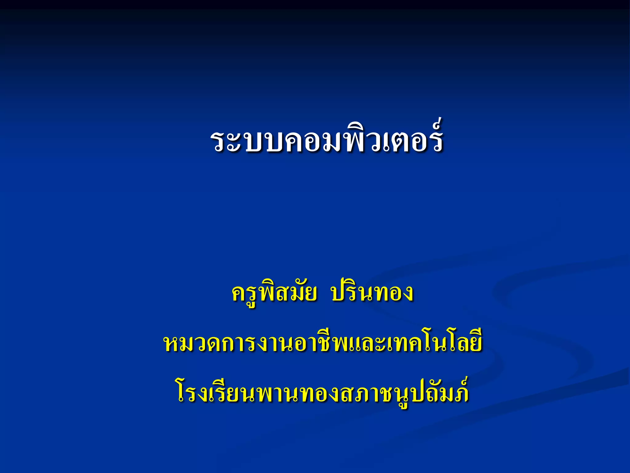 บทที่ 1 ความรู้เบื้องต้นเกี่ยวกับคอมพิวเตอร์