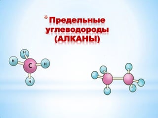 Алканы, или предельные углеводороды, характеризуются насыщенными молекулами с формулой CnH2n+2 и имеют особенности в номенклатуре и изомерии. Включает информацию о строительстве молекул, физических и химических свойствах, а также различных методах получения алканов. Используются в производстве сажи и органических веществ, включая растворители и хладогенты.