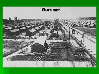 מחנה GURS נבנה בשנת 1939 על ידי שלטונות צרפת , כדי לעצור את הנרדפים שברחו מספרד אחרי המפלה של המעוז האחרון " מחוז קטלוניה " של הרפובליקנים במלחמת האזרחים עקובת הדם בספרד . עד לסגירתו של המחנה בסוף שנת 1945, שהו בו כ -64,000 עצירים ( בין 5,000-15,000 אנשים בשנה ). המחנה קלט בהתחלה כ - 17,000 ספרדים . בהדרגה קובצו גם בני לאומים שונים , בעיקר גרמנים ואוסטרים ואזרחים ששהו באופן לא חוקי בצרפת . נכלאו בו ילדים נשים וגברים . באוקטובר 1940 ניתנה הוראה על ידי ואגנר , המושל הנאצי של מחוז באדן ופפלץ בגרמניה להעביר כ -7000 יהודים ממחוזו אל מחנה GURS . היהודים קבלו התראה להתארגן למעבר תוך יממה , ונצטוו להשאיר את רכושם ולהצטייד בחפצים אישיים ובאוכל . חלק גדול מהאנשים היו רחוקים ממסורת היהודית ובחלקם היו מומרים . המעבר המהיר משיגרת החיים הבורגניים אל תנאי הקיום הקשים של מחנה ריכוז , היכה אותם בהלם , וחלק גדול מהם ( כ -10%) נפטר ממחלות והתאבדויות רבות . " החיים " במחנה המעצר GURS .
