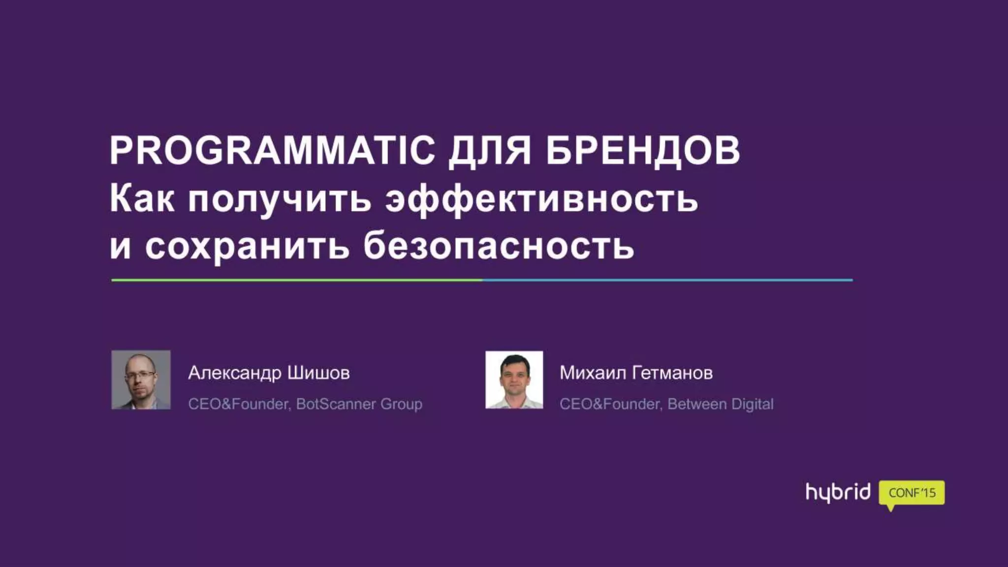 Документ обсуждает проблемы и решения в области имиджевой рекламы и brand safety в контексте programmatic. Основное внимание уделяется необходимости оптимизации рекламы с учетом контентного окружения и вовлеченности пользователей, а также сравнительному анализу решений для brand safety. Приводятся примеры систематизации контента по возрастным категориям и методам улучшения кампаний с использованием технологии botscanner.