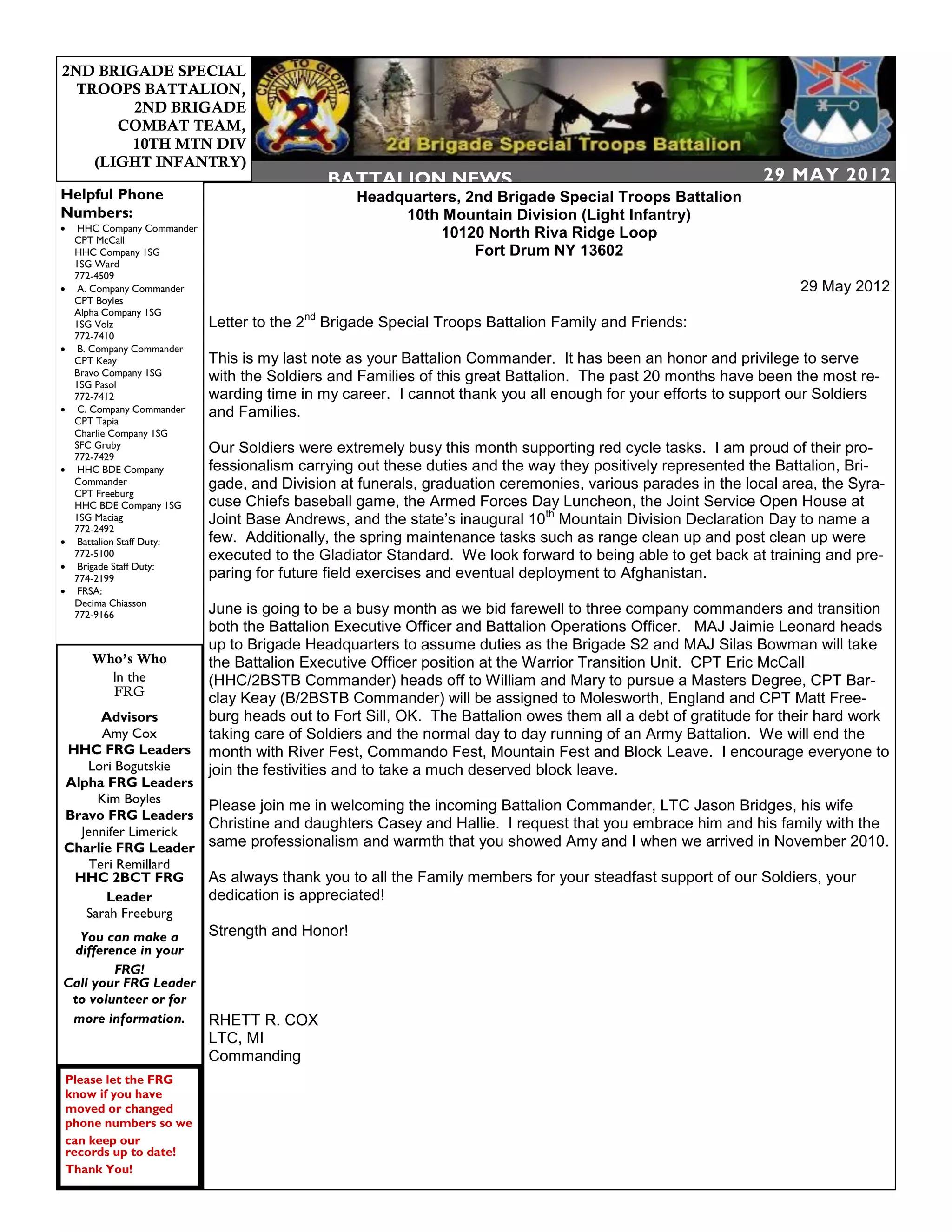 - The company will undergo a change of command on June 15th with CPT Paul Kubik taking over.