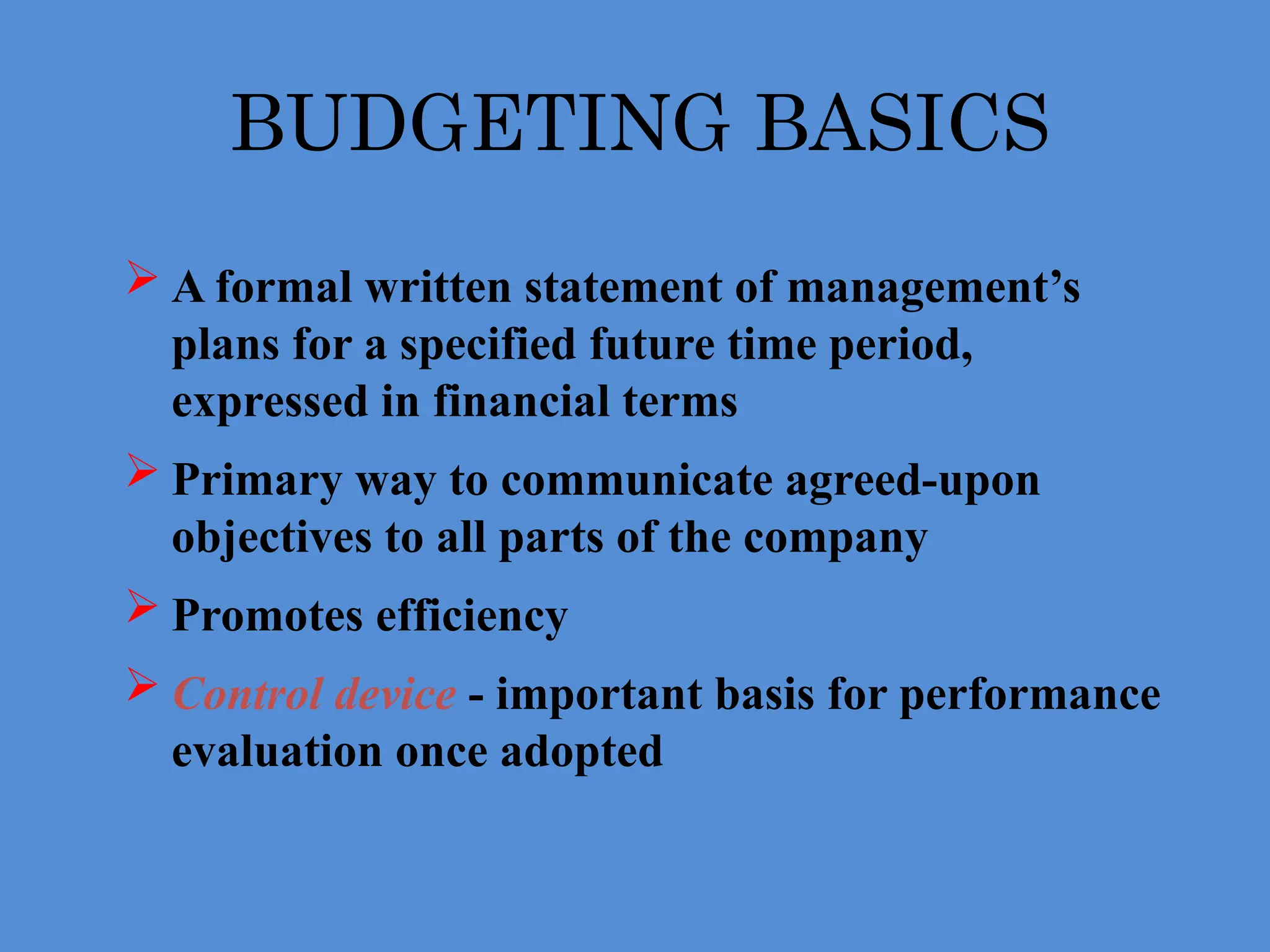 b) It consists of 2 classes of budgets: Operating Budgets and Financial