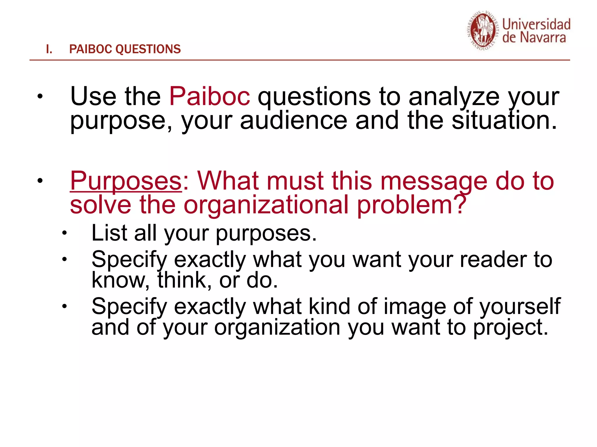 The document outlines effective business communication strategies using the PAIBOC framework, which focuses on purpose, audience, information, benefits, objections, and context. It emphasizes the importance of understanding audience characteristics and adapting messages accordingly in terms of strategy, organization, style, and design. Additionally, it discusses communication channels and the importance of achieving clarity and positive tone in messages to ensure a successful engagement with the audience.