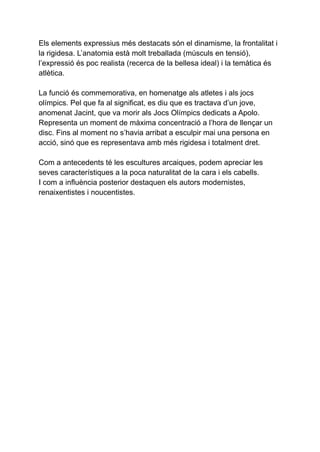 Com a antecedents té les escultures arcaiques, podem apreciar les