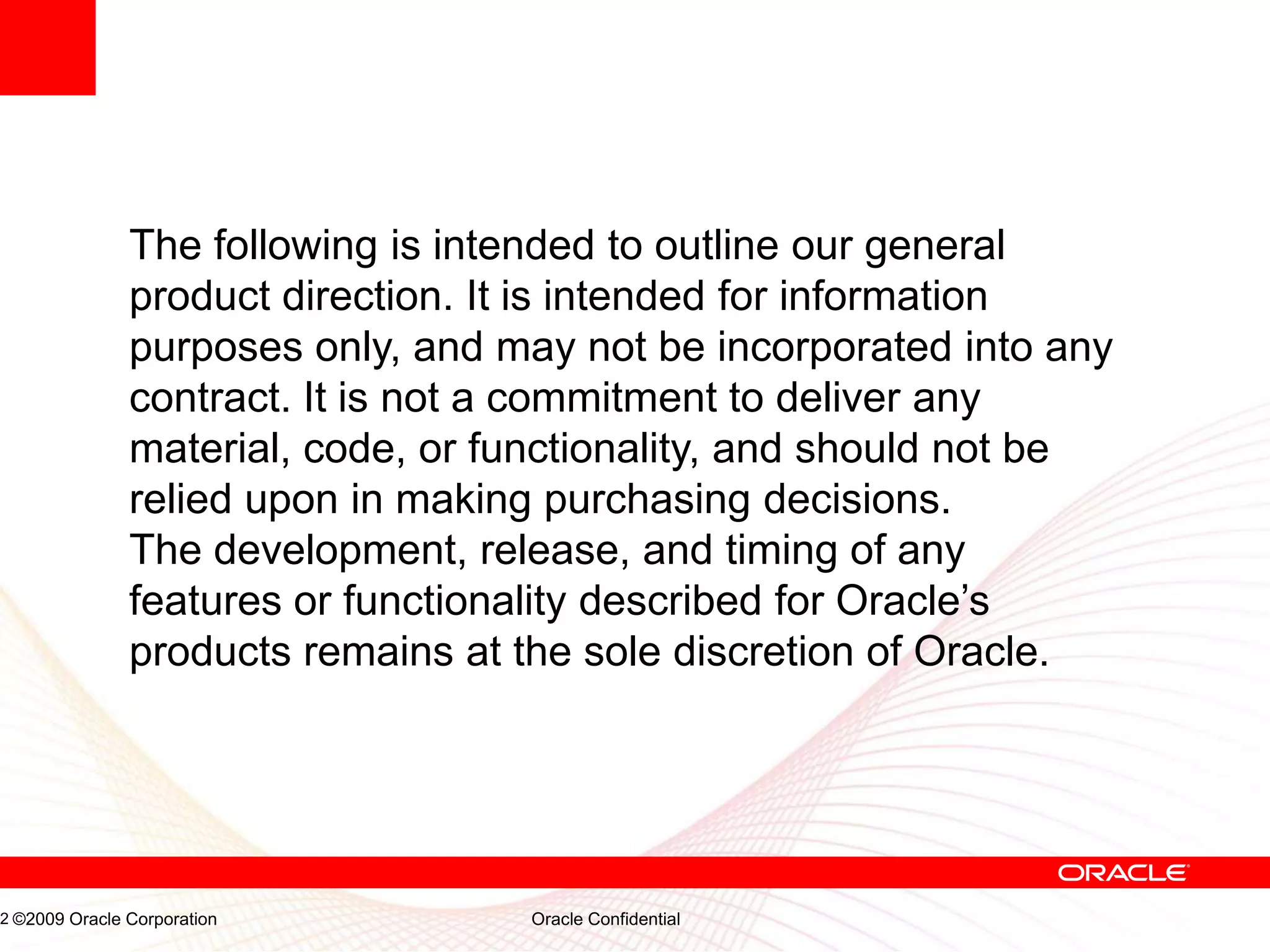 The document provides an overview of Oracle's product direction for Oracle Fusion Middleware 11g. It outlines that the information is intended for informational purposes only and is not a commitment to deliver any functionality. It also notes that the development, release, and timing of any features described remains at Oracle's sole discretion.