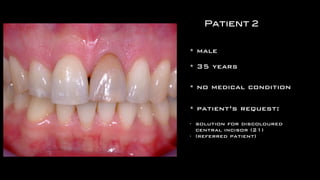 - Male patient aged 35 requested treatment for a discolored tooth (21).