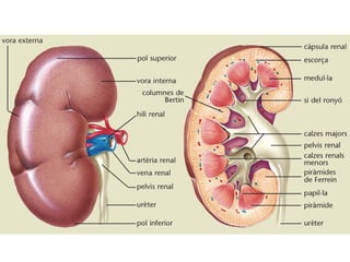• Funció: Filtrar la sang i separar la urea, l’excés de sals i altres
