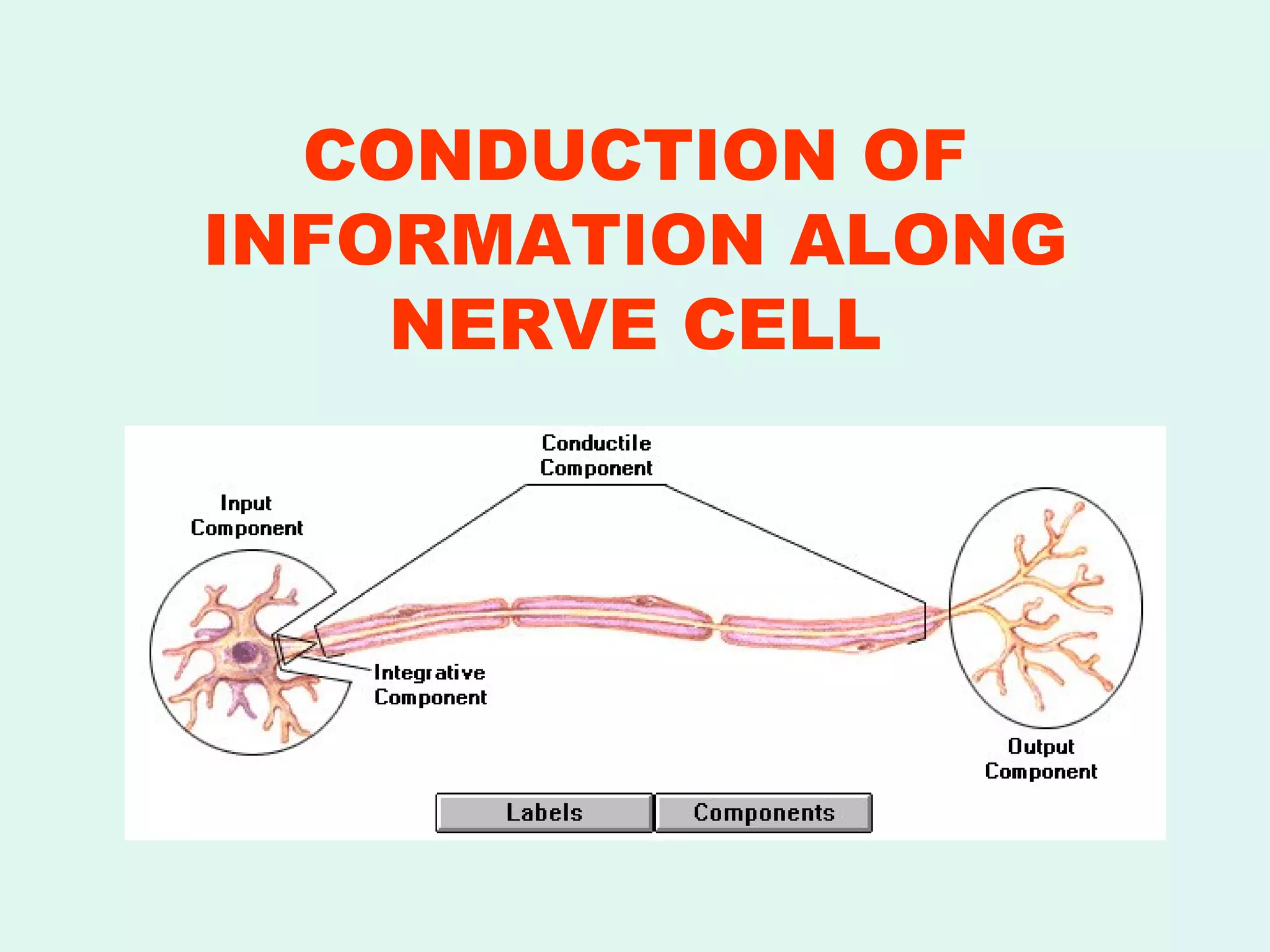 This document summarizes how electrical and chemical information is conducted along nerve cells through three main mechanisms:
