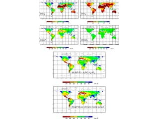 The document discusses the impact of climate change on wheat production, focusing on changes in precipitation and evaporation patterns due to rising temperatures. It highlights the variability of predicted climate outcomes at local scales, contrasting the 'wet get wetter and dry get drier' theory with observed trends. It emphasizes the need for further research on water-use efficiency and the effects of elevated CO2 levels on plant growth and yields while considering the chaotic nature of climate systems.
