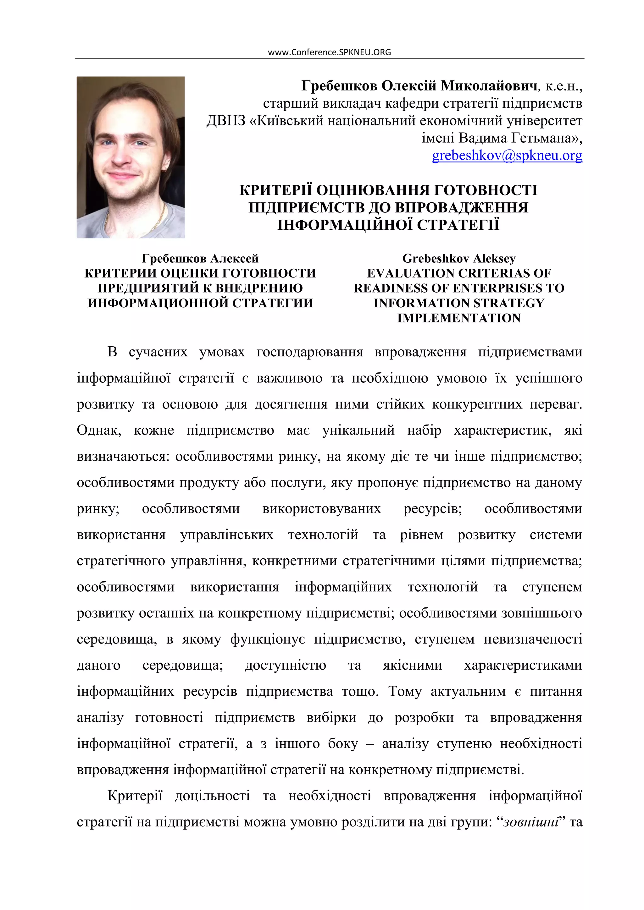 Критерії оцінювання готовності підприємств до впровадження інформаційної стратегії