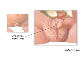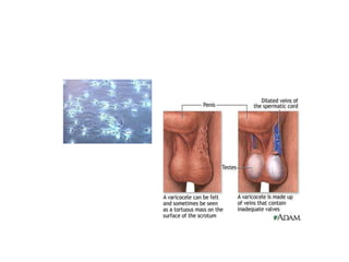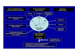 This document discusses infertility in females and males. It defines different types of infertility and lists numerous potential causes including issues with sperm production/function, egg production/ovulation, fallopian tube blockages, endocrine disorders, infections, genetic defects, obesity, stress, environmental toxins, and lifestyle factors. It also outlines tests and diagnostics used to evaluate infertility as well as various medical and surgical treatment options like fertility drugs, artificial insemination, in vitro fertilization, and adoption. Potential complications of treatment are mentioned.
