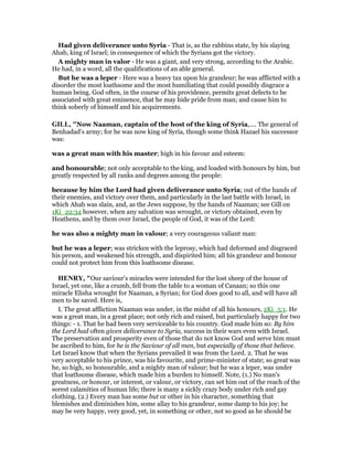 Naaman, the commander of the Syrian army, was a great man who was respected by his king. Through Naaman, God had given Syria victory over its enemies. However, Naaman had contracted leprosy. A young Israelite servant girl who worked for Naaman's wife told her that if Naaman went to see the prophet Elisha in Samaria, he could cure Naaman's leprosy. Naaman told his king what the servant girl had said.