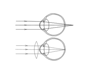 Lenses can be either convex or concave, with convex lenses focusing light rays at a focal point while concave lenses refract light rays to spread them out. The location and size of an image produced by a lens depends on whether it is convex or concave and how close or far the object is. Lenses are used to correct vision problems like farsightedness and nearsightedness, as well as in optical devices like telescopes and microscopes.