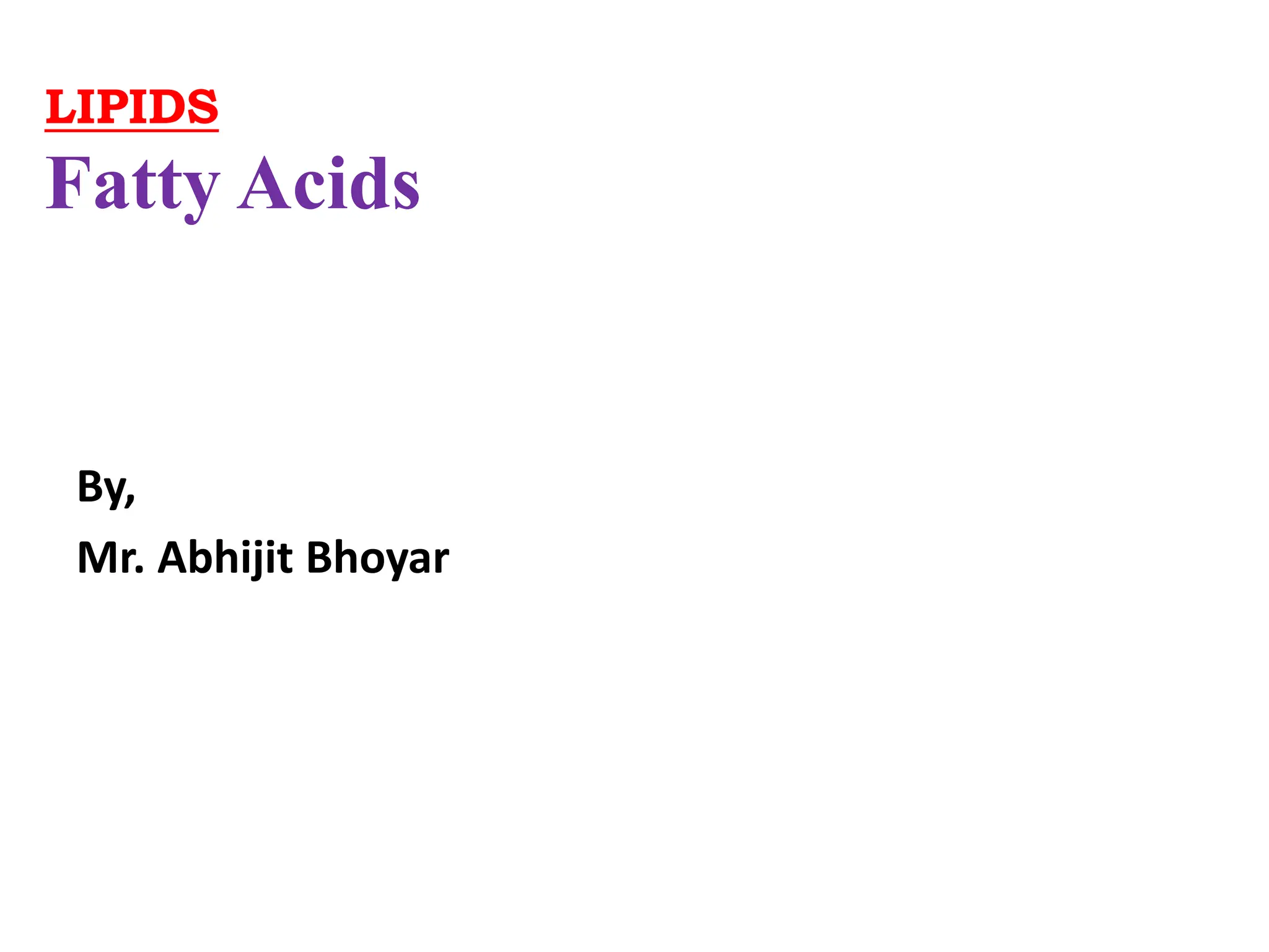 The document provides an overview of fatty acids, including their definitions, classifications, and biological importance. It explains various types of fatty acids based on their chain length, degree of saturation, and essentiality, highlighting their roles in metabolism, energy storage, and cell membrane integrity. Additionally, it discusses the harmful effects of trans fatty acids and emphasizes the need for essential fatty acids for human health.