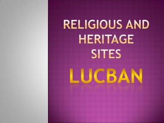 The document provides information about Lucban, Quezon in the Philippines. It includes a description of the mayor, vision, mission, and historical figures from Lucban. It also describes popular sites like Kamay ni Hesus Shrine and the St. Louis Church. Student testimonials reflect on the heritage program trip to Lucban and experiencing the local culture, history, and challenges of navigating an unfamiliar place. The document analyzes Lucban's strengths, weaknesses, opportunities, and threats to inform recommendations on improving the tourist experience.