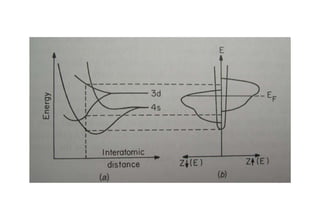 Ferromagnetism arises from the parallel alignment of atomic magnetic moments due to strong exchange interactions between electrons. Ferromagnetic materials can exhibit spontaneous magnetization and magnetic ordering temperatures. The exchange force is a quantum mechanical phenomenon that favors parallel spin alignment of electrons and results in large internal molecular fields that align atomic moments. Ferrimagnetism is a similar phenomenon where sublattices have unequal and opposing magnetic moments, resulting in a net magnetic moment. Common ferrimagnetic materials include ferrites with spinel and hexagonal structures.