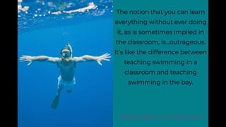This document provides information about Makey Makey, an invention kit that allows users to turn everyday objects into touchpads and controllers to create computer inputs. The kit works by connecting objects through alligator clips to the Makey Makey board, which is connected by USB to a computer. This allows objects to act as keyboard buttons or mouse clicks when touched, enabling creative invention projects. The document shares examples of projects made with Makey Makey and provides a link to purchase the kit online.