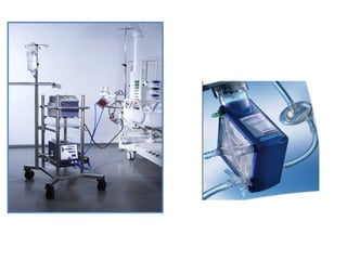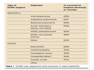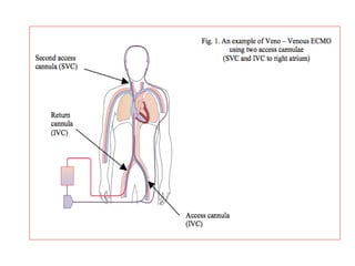 Tài liệu trình bày tổng quan về ECMO (Extracorporeal Membrane Oxygenation), bao gồm lịch sử phát triển, ứng dụng trong điều trị suy hô hấp và suy tim, cũng như các công nghệ và kỹ thuật liên quan. Chú trọng đến các chỉ định, ưu nhược điểm của các phương pháp ECMO và những biến chứng có thể xảy ra. Kết luận nhấn mạnh sự phát triển ngày càng gia tăng của ECMO và tầm quan trọng của kỹ năng trong đội ngũ y tế.