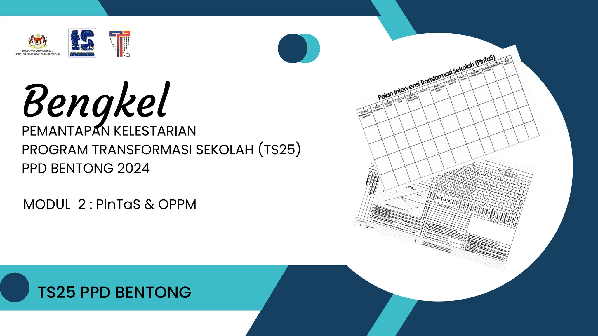 Dokumen ini membincangkan pelaksanaan Program Transformasi Sekolah (PINTAS) di PPD Bentong yang merangkumi perancangan dan pemantauan tindakan untuk penambahbaikan pendidikan dalam tempoh satu tahun. Terdapat 13 elemen penting yang digariskan untuk memandu intervensi pendidikan berdasarkan analisis data serta kriteria kejayaan yang jelas. Fokus utama adalah pada meningkatkan kualiti pengajaran dan pembelajaran melalui pelbagai inisiatif dan projek yang berdasarkan data dan melibatkan kerjasama antara pihak sekolah dan komuniti.