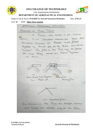 K.NEHRU is an Assistant Professor of Aircraft Structural Mechanics at SNS College of Technology. He holds an M.Tech and Ph.D and teaches the subject of Aircraft Structural Mechanics. The topic of his lecture on January 27th, 2021 is the analysis of plane trusses.