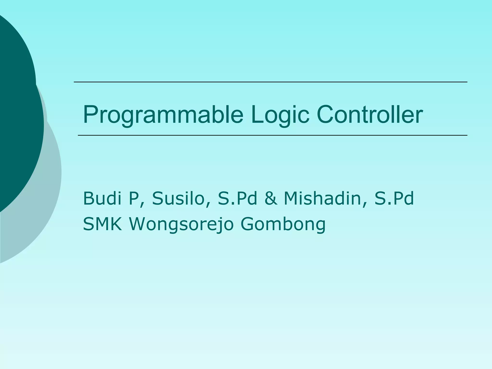 Dokumen tersebut membahas tentang Programmable Logic Controller (PLC). PLC merupakan instrumen yang digunakan untuk menggantikan rangkaian relay secara sekuensial untuk mengontrol mesin. Dokumen ini menjelaskan pengertian, keuntungan, komponen, cara kerja, jenis input-output, pemrograman, dan contoh penerapan PLC pada sistem kontrol seperti lampu lalu lintas dan lift.