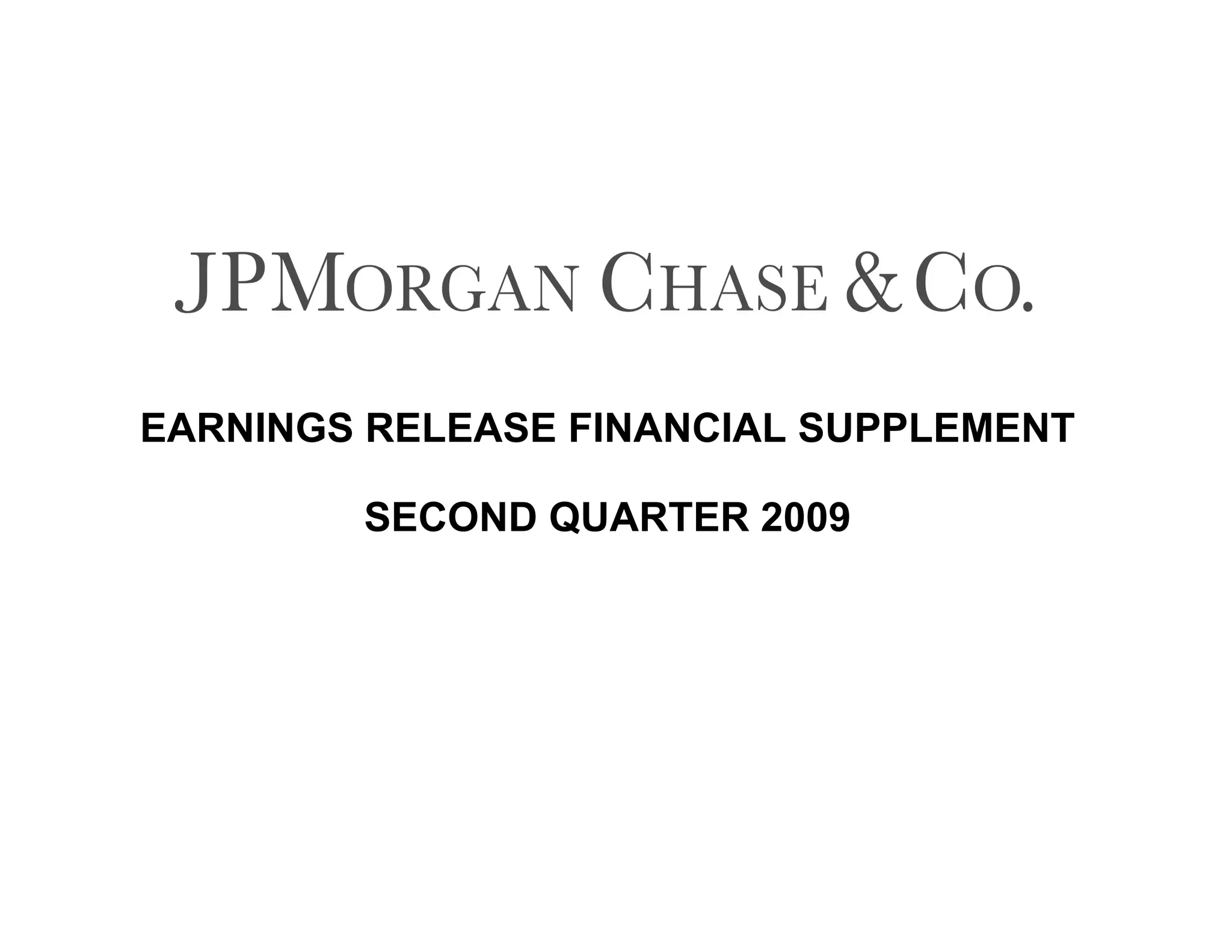 The document is JPMorgan Chase & Co.'s earnings release for the second quarter of 2009. It reported net income of $2.7 billion for Q2 2009, up 27% from Q1 2009. Total net revenue was $25.6 billion for Q2 2009, up 2% from the previous quarter. The provision for credit losses was $8 billion for Q2 2009, down 7% from Q1 2009.