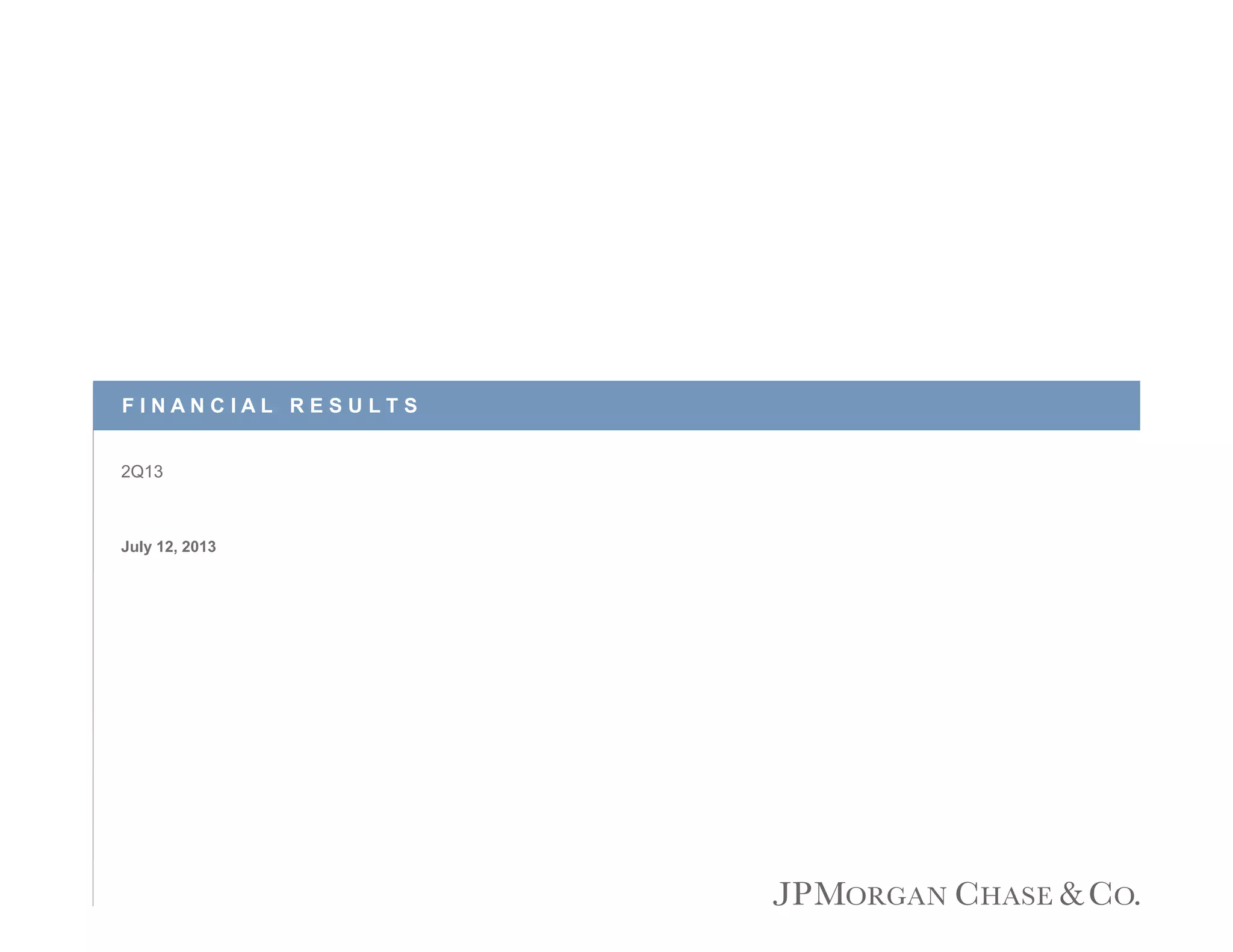 - JPMorgan Chase reported net income of $6.5 billion for 2Q13, with EPS of $1.60. Revenue was $26.0 billion.