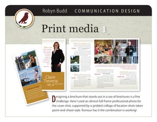 This document is a brochure for Claire Trevena, MLA for the North Island region of British Columbia. It discusses several key issues: