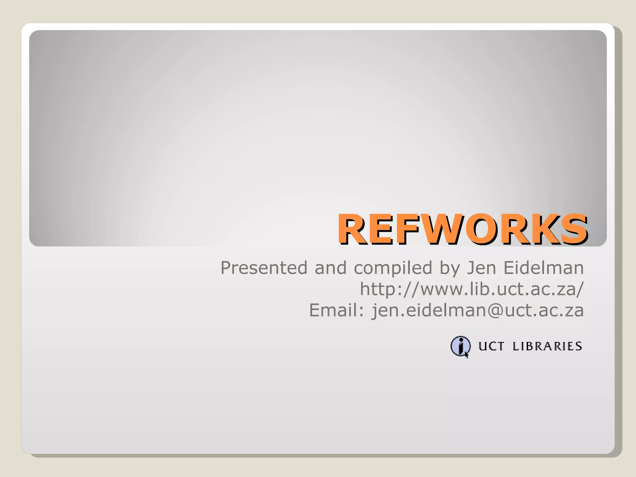 This document provides an overview of how to get references into RefWorks. It discusses importing directly from online data vendors, importing text files from databases, manual entry, and using RefGrab It to import from websites. It then provides a step-by-step example of directly importing a reference from the EBSCO Host database General Science Abstracts on the topic of "global warming" into RefWorks.