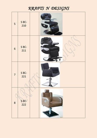 This document from Krafts N Designs is a price list containing 20 items numbered 1 through 20 with model numbers ranging from BC-101 to BC-401. Each item has a model number but no specified price, suggesting this is just a listing of available products without associated costs.
