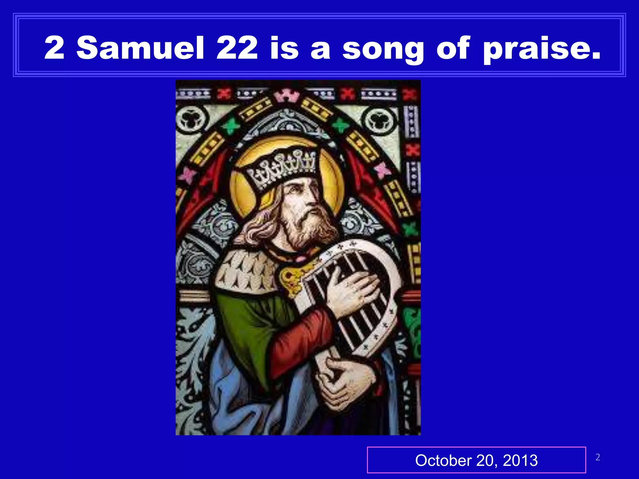 This document summarizes the sermon given at Gospel Baptist Tabernacle on October 20, 2013. The sermon focused on 2 Samuel 22, which describes King David's song of praise to God for delivering him from his enemies and making him victorious. The sermon emphasized that God will be all that people need, just as he was for David, by saving those who need a savior, providing for those in need, and comforting those who are grieving, as long as people fully commit to seeking God with their whole heart.