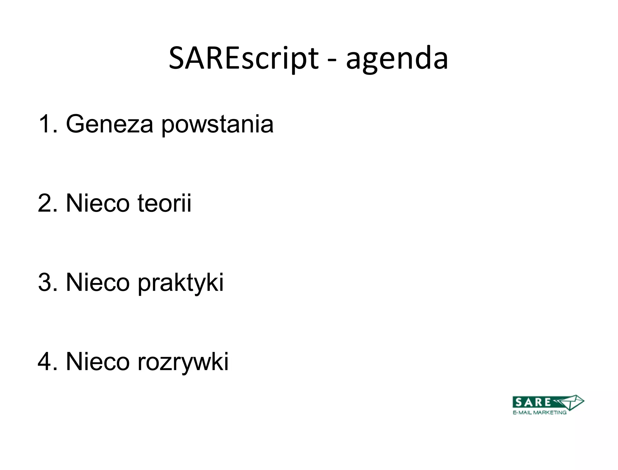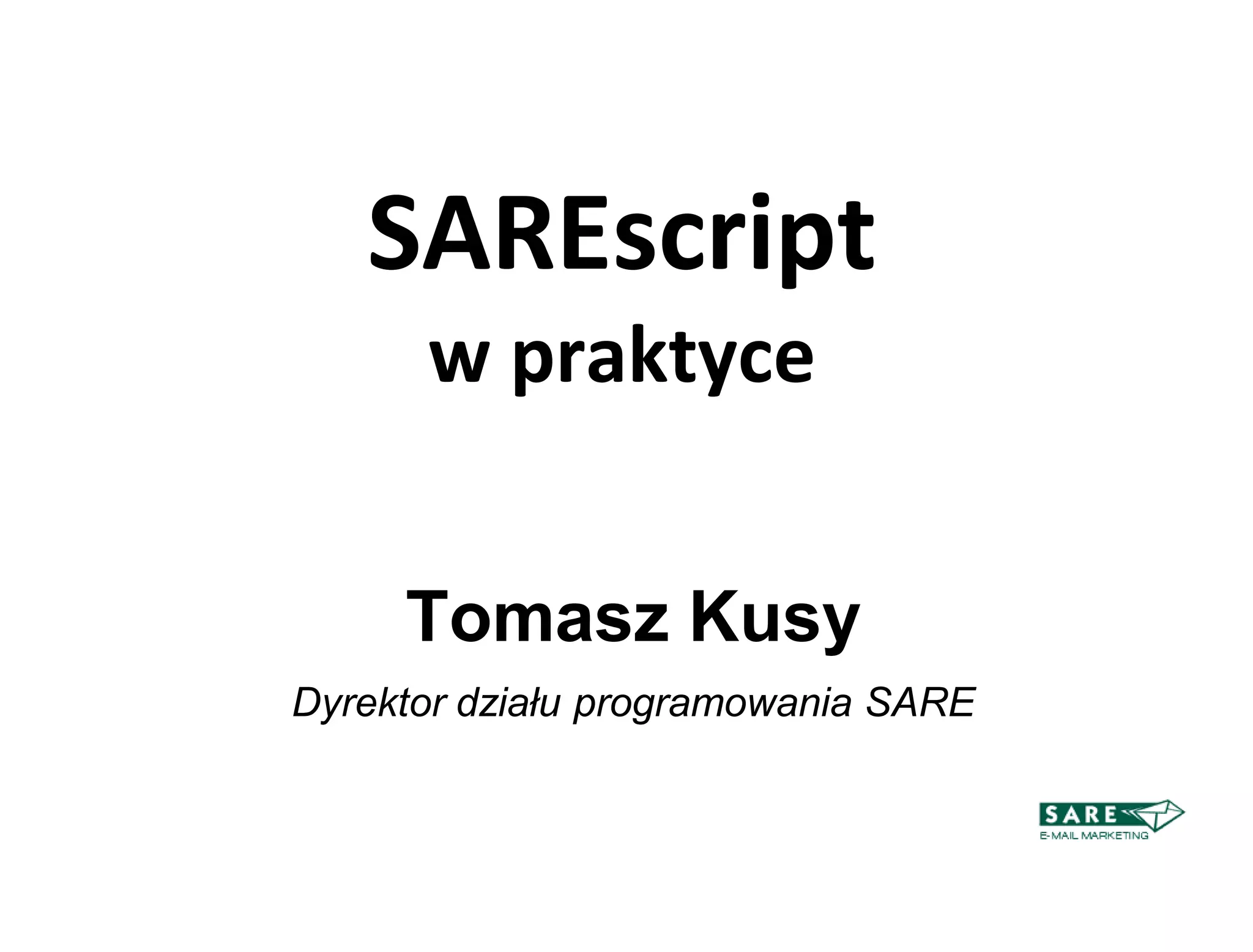 SAREscript w praktyce Tomasz Kusy SARE - Konferencja E-mail Marketing 2010