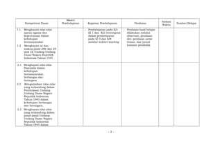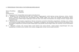 Dokumen ini menjelaskan kurikulum Pendidikan Pancasila dan Kewarganegaraan untuk SMK/Mak kelas X yang mencakup berbagai kompetensi inti dan dasar, serta kegiatan pembelajaran terkait nilai-nilai Pancasila, hak asasi manusia, dan undang-undang dasar negara Republik Indonesia. Pembelajaran dilakukan melalui integrasi berbagai metode, seperti observasi dan penilaian diri, untuk membangun sikap bertanggungjawab dan peduli terhadap lingkungan sosial. Penekanan juga diberikan pada partisipasi masyarakat dan upaya pemerintah dalam menegakkan dan memajukan hak asasi manusia di Indonesia.