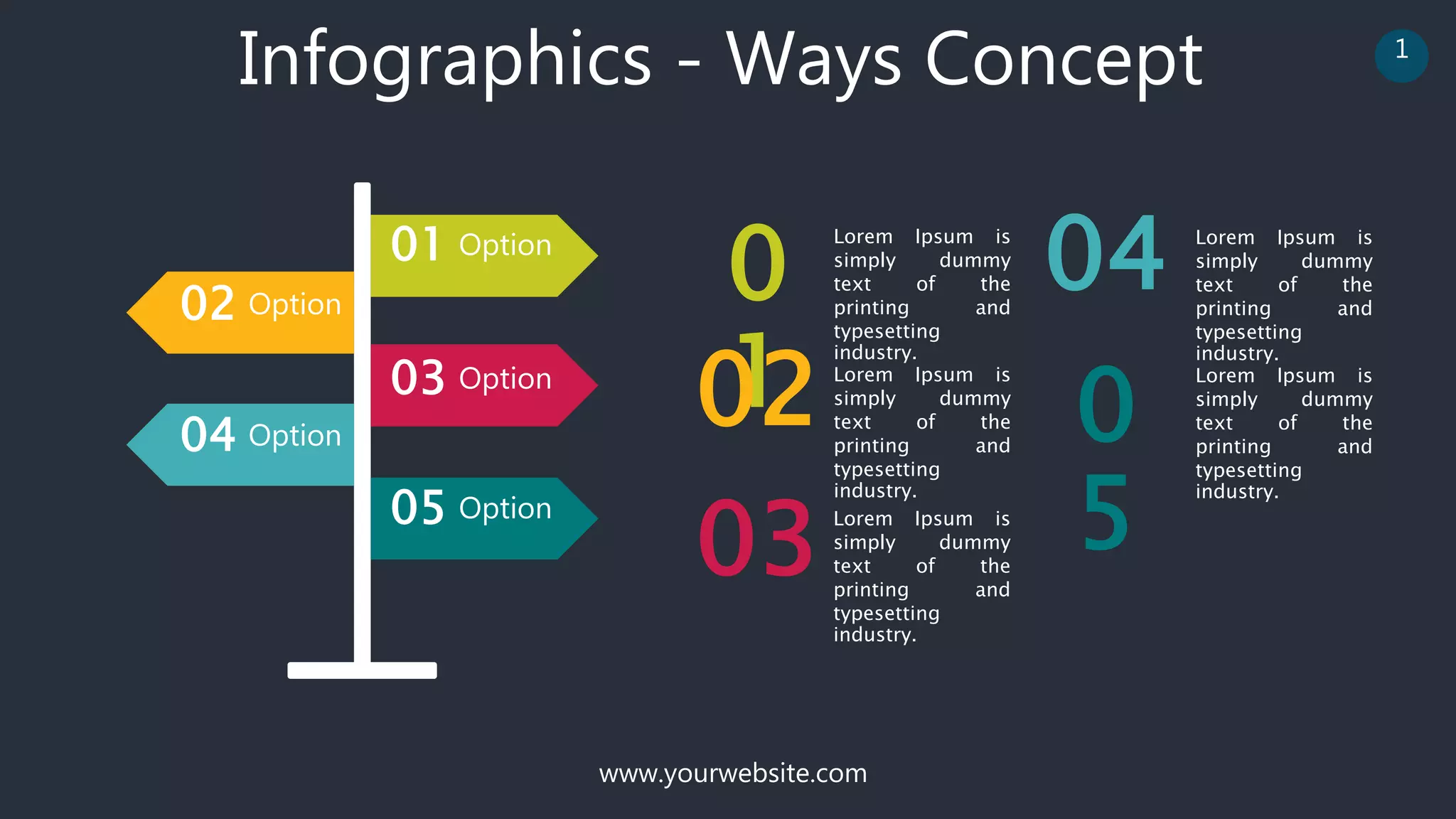 The document discusses 5 options for an infographic concept on 2 separate webpages. Each option contains the same lorem ipsum placeholder text about the printing and typesetting industry.