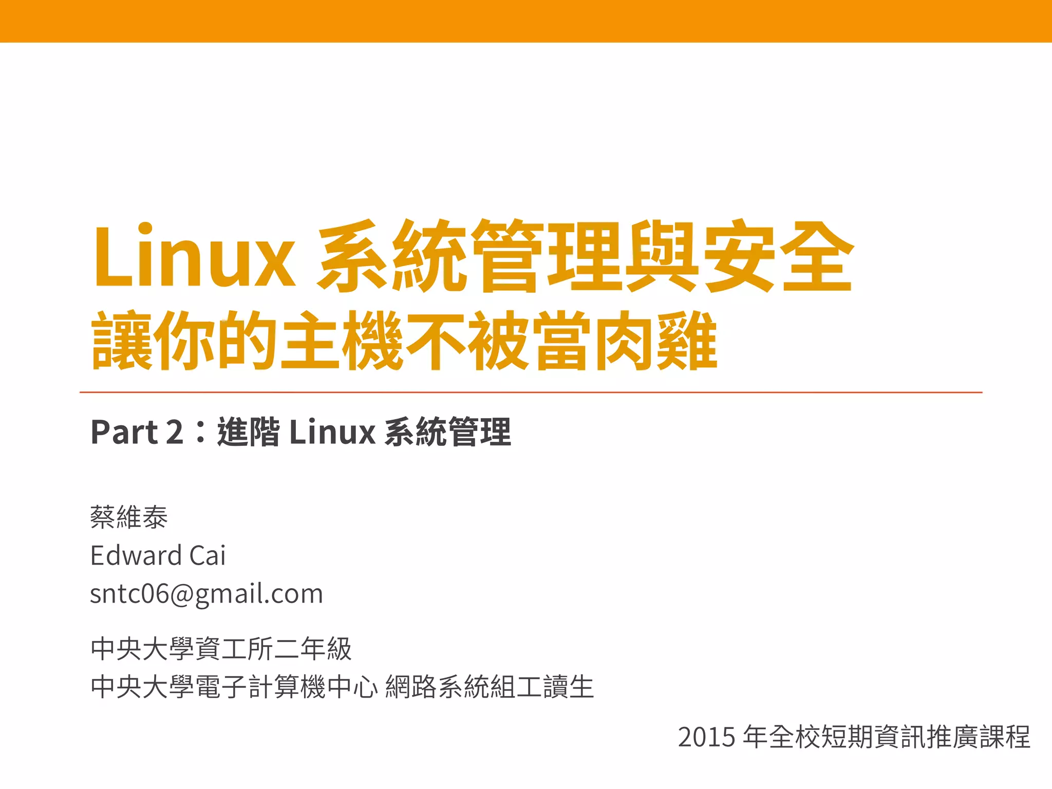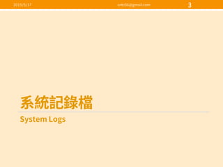 - The document discusses various Linux system log files such as /var/log/messages, /var/log/secure, and /var/log/cron and provides examples of log entries.