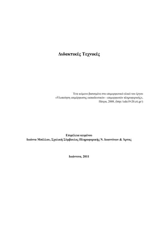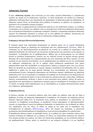 πξνζέγγηζεο, αμηνπνηψληαο ραξαθηεξηζηηθά απφ ζχγρξνλεο ζεσξίεο κάζεζεο. ηε ζπλέρεηα, πεξηγξάθνληαη