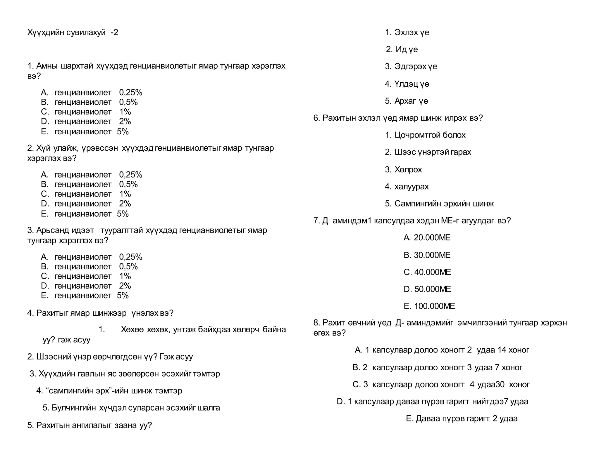 хүүхэд 2 test 1. Хүүхдийн сувилахуй -2
