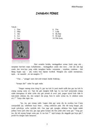 Cerita pendek ini menceritakan tentang seorang gadis bernama Fiaa yang sedang patah hati karena ditinggalkan kekasihnya. Kemudian datang murid baru bernama Afa yang berusaha mendekatinya. Meskipun awalnya Fiaa bersikap sinis, namun perlahan Afa berhasil membuat Fiaa mulai terbuka kembali dan mengajaknya pergi bersama setelah sekolah.
