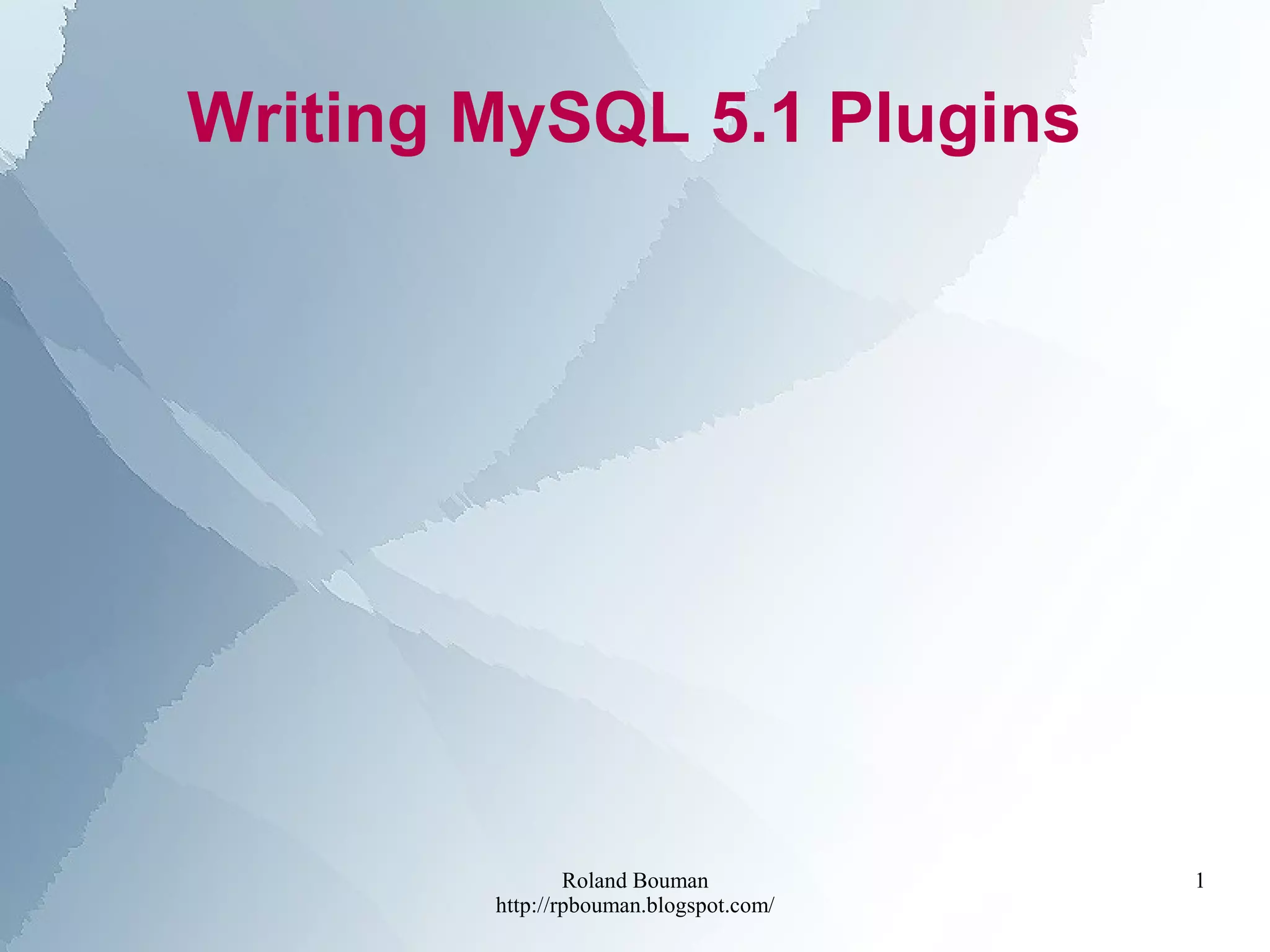 This document discusses how to write MySQL 5.1 plugins. It covers including necessary header files, declaring plugins, implementing a generic plugin descriptor, and providing init and deinit functions. It also provides an example of a minimal daemon plugin that logs initialization and deinitialization.