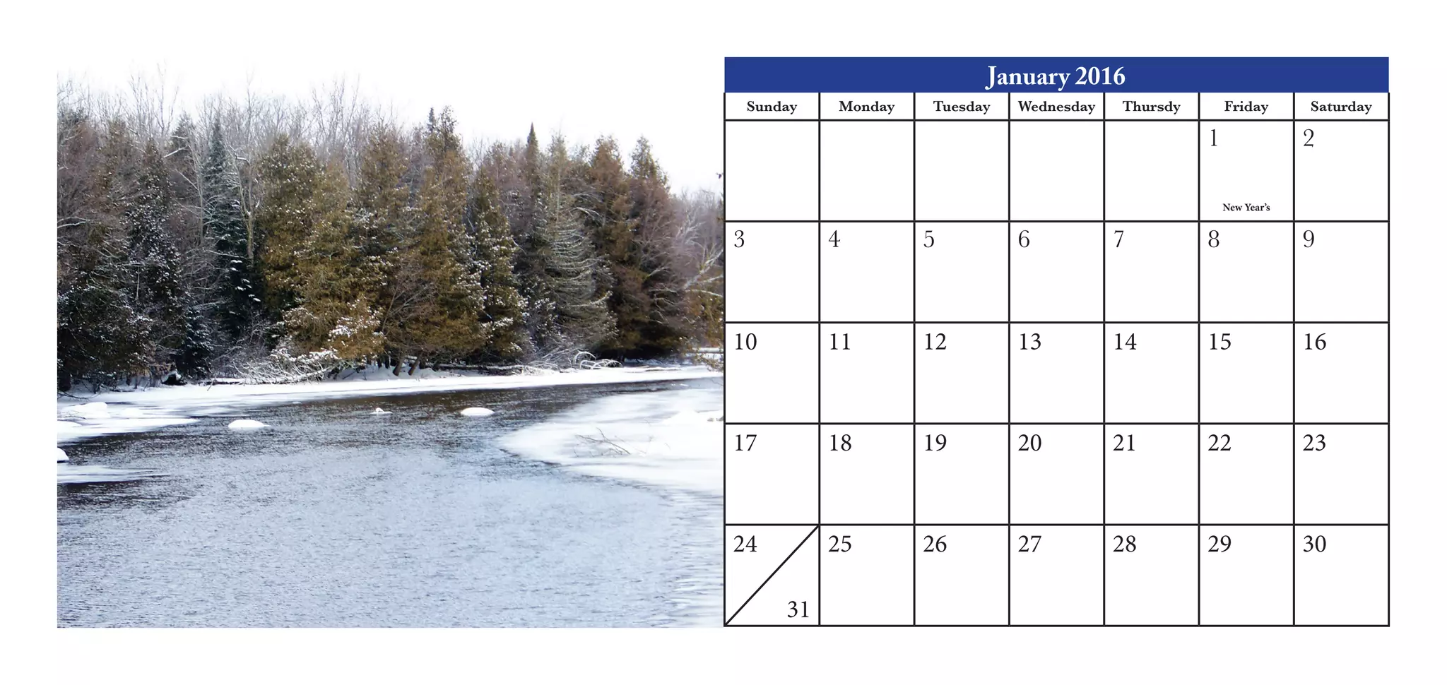 The document contains monthly calendars for the years 2016 through 2017. It lists the months, dates, days of the week and notable holidays for each month including New Year's Day, Valentine's Day, St. Patrick's Day, Easter, Mother's Day, Father's Day, Independence Day, Labor Day, Halloween, Thanksgiving, Christmas Eve, Christmas and New Year's Eve.