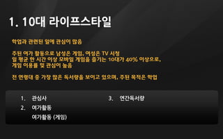 전 연령대 중 가장 많은 독서량을 보이고 있으며, 주된 목적은 학업