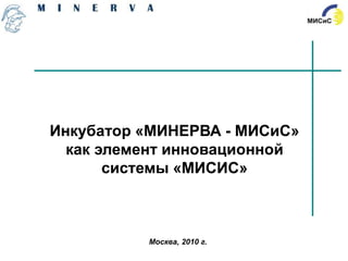 Документ описывает инкубатор 'Минерва - МИСиС' как часть инновационной системы, сосредоточенную на создании экосистемы для стартапов в России, с привлечением значительных инвестиций и использованием различных этапов финансирования. В нем также анализируется израильская модель инкубации стартапов, ее критерии успеха, организационные структуры и статистика по инкубации. Главной целью является превращение инновационных идей в успешные компании с высоким рыночным потенциалом.