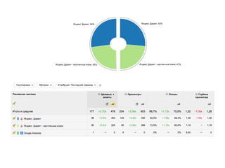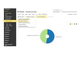 Документ обсуждает веб-аналитику и ее применение в различных типах бизнеса, таких как интернет-магазины, оффлайновые магазины, новостные порталы и блоги. Основное внимание уделяется метрикам посещаемости, источникам трафика и поведению пользователей, а также результатам, таким как увеличение конверсий и снижение стоимости одной конверсии. Также рассматриваются новые возможности и функции платформы 'Метрика 2.0', включая сегментацию и многоуровневые отчеты.