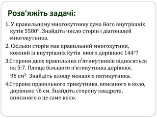 1. Управильному многокутнику сума його внутрішніх