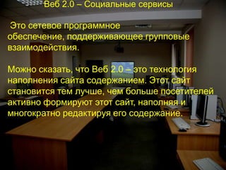 Документ описывает использование технологий веб 2.0 в образовательном процессе и определяет принципы 'образования 2.0', включая субъктность, избыточность и сотрудничество. Подчеркивается важность активного участия учащихся в формировании содержания образования и создания избыточной образовательной среды. Также рассматриваются преимущества внедрения очно-дистанционного обучения в университете для студентов, работающих и сталкивающихся с экономическими трудностями.