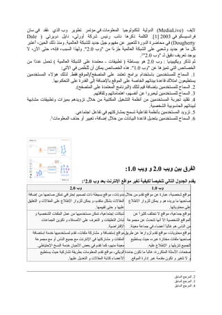 تناقش الوثيقة تقنيات الويب 2.0 وتطبيقاتها في التعليم، حيث تقدم نظرة عامة عن كيفية استفادة المتعلمين من هذه التقنيات في التعلم التفاعلي. كما تشير إلى الفرق بين الويب 1.0 والويب 2.0، مع التركيز على الخصائص التفاعلية والمرونة التي يوفرها الويب 2.0. تبرز أهمية استخدام هذه التقنيات في تعزيز التعليم والمشاركة الفعالة من قبل الطلاب.