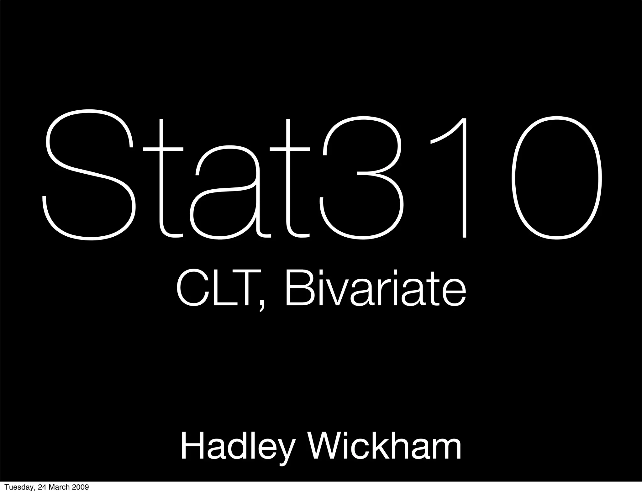 This document contains notes from a statistics course on March 24, 2009. It discusses: 1. A help session being moved to a different time and location. 2. A recap of the central limit theorem, including asking students to write down their understanding of it. 3. Continuing the proof of the central limit theorem and discussing alternative expressions and a fuller proof.