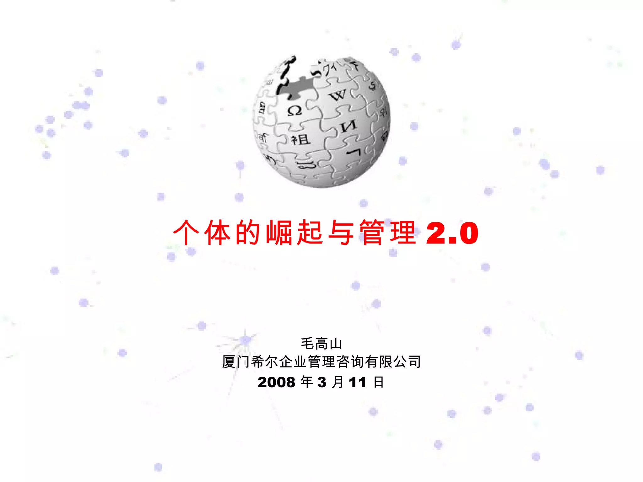 文档探讨了个人在全球化与管理发展的重要性,强调从管理2.0到个体崛起的变化。提到知识工作者的特征和以生命为中心的组织观,强调管理应当以服务为核心,推动个体与组织共同发展。文中还呼应了民主的潜在意义,提出了未来组织与管理的新思维。
